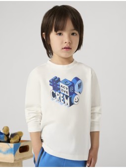 Koszulka z długim rękawem dla chłopca. Okrągły dekolt. Ubranko wykonane ze 100% bawełny. Ozdoby: aplikacja na przodzie ubranka.