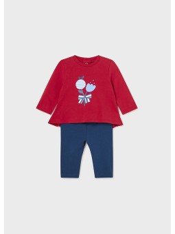 MAYORAL NEWBORN KOMPLET DLA DZIEWCZYNKI KOSZULKA NA DŁUGI RĘKAW CZERWONA LEGINSY GRANAT 1745 /70
