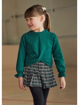Bluza dla dziewczynki z falbanką na mankiecie. Okrągły dekolt. Model z asymetrycznym dołem.