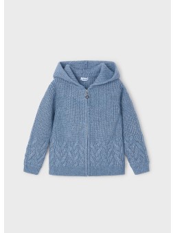 Zawiera poliester z recyklingu. Bluza dzianinowa dla dziewczynki. Model z kapturem. Zapięcie na środku na zamek błyskawiczny. Ciepła i miękka dzianina o grubym splocie. Dół i mankiety z elastycznej dzianiny dla lepszego dopasowania. Ozdoby: elementy ozdobnej plecionki.