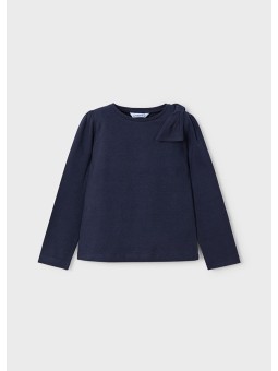 Okrągły dekolt. Artykuł wykonany ze 100% bawełny. Koszulka dla dziewczynki. Ozdoby: kokarda.