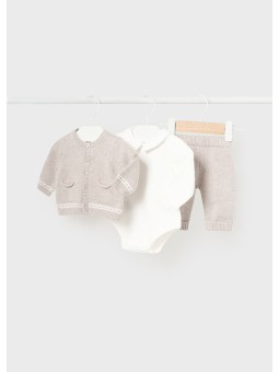 Oryginalny zestaw składający się z trzech elementów dla noworodka. 100% bawełna.