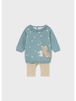 Zestaw ubranek dla noworodka dziewczynki składający się z kompletu sweterka i pasujących długich spodni.