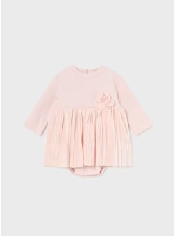 Sukienka body. Zapięcie na zatrzaski na plecach. Zapięcie na zatrzaski w kroku ułatwiające zakładanie ubrania. Model został wykonany z różniących się tkanin góry i dołu, dzięki czemu uzyskano niepowtarzalny charakter. Ozdoby: kwiatowa aplikacja