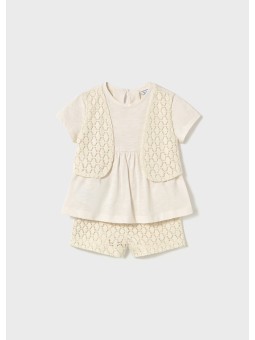 Ubranko ECOFRIENDS, zawiera bawełnę przetworzoną. Komplet koszulka i spodenki dla dziewczynki