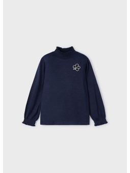 Koszulka z długim rękawem ze ściągaczami dla dziewczynki. Półgolf. Ozdoby: Marszczone detale, glitter. Model z naszej kolekcji basic (Mayoral Basic), ubranko niezbędne w dziecięcej szafie, jako uzupełnienie każdej stylizacji. Ze względu na wymogi bezpieczeństwa, w mniejszych rozmiarach (2-3 lata) mogą wystąpić różnice w użytych elementach dekoracyjnych.