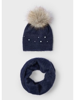 Czapka dla dziewczynki wykonana z ciepłych i elastycznych materiałów, które gwarantują idealne dopasowanie do głowy, maksymalny komfort i ochronę przed zimnem. Ozdoby: elementy z imitacji biżuterii, pompon
