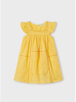 Sukienka z krótkim rękawem dla dziewczynki. Prosty krój . Zdobiona haftami