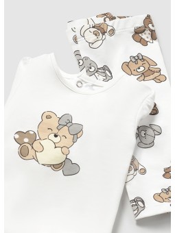 MAYORAL NEWBORN KOMPLET DLA DZIEWCZYNKI KOSZULKA NA DŁUGI RĘKAW BIAŁA Z MISIEM LEGINSY MISIE BEŻ 1760/86