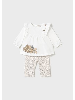 Zestaw ubranek dla noworodka dziewczynki składający się z kompletu koszulki i pasujących długich spodni.