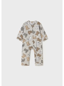 Piżama z długim rękawem dla noworodka 0 do 18 miesięcy. Śpioszki ze stópkami. Okrągły dekolt. Zapięcie na zamek, nadruk w misie.