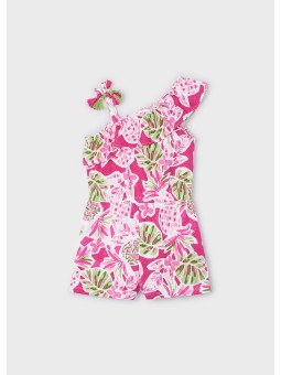Kombinezon dla dziewczynki . Okrągły dekolt. Lekki i elastyczny materiał zapewniający codzienną wygodę. Nadruk kwiatowy