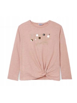 Koszulka z długim rękawem dla dziewczynki 8 do 16 lat. Okrągły dekolt. Lekki i elastyczny materiał zapewniający codzienną wygodę. Model z węzłem na dole. Ozdoby: cekiny.