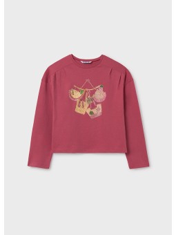 Ubranko ECOFRIENDS 100% zrównoważona bawełna. Koszulka z długim rękawem dla dziewczynki. Okrągły dekolt. Grafika na przodzie