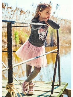 Bluza z długim rękawem dla dziewczynki 2 do 9 lat ze ściągaczami. Okrągły dekolt. Dół z elastyczną gumką dla lepszego dopasowania.