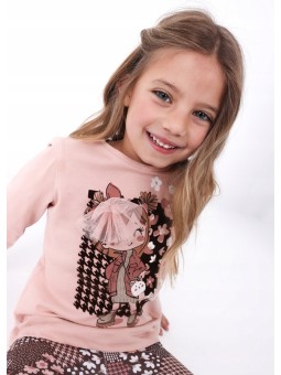 MAYORAL KOMPLET DLA DZIEWCZYNKI BLUZKA DŁUGI RĘKAW RÓŻ SPODNIE LEGINSY BRĄZ 4795 /51