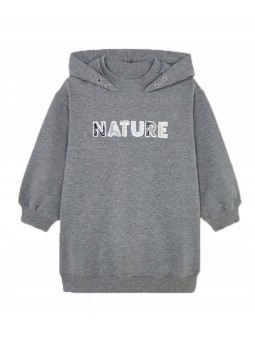 Sukienka z długim rękawem dla dziewczynki 6 do 36 miesięcy. Okrągły dekolt z detalami w kontrastowym kolorze. Ozdobna grafika na przodzie