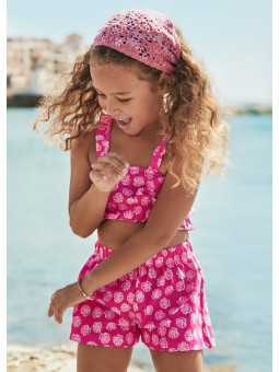 Ubranko ECOFRIENDS, zawiera bawełnę przetworzoną. Komplet top ze spodenkami dla dziewczynki