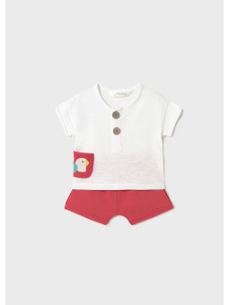 Komplet dwóch artykułów składający się z koszulki ze spodniami typu szorty dla niemowlęcia chłopca.