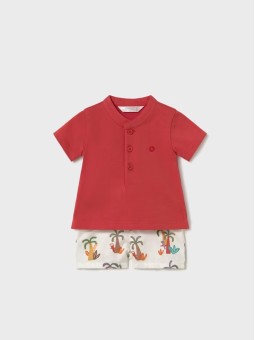 Komplet dwóch artykułów składający się z koszulki ze spodniami typu szorty dla niemowlęcia chłopca.