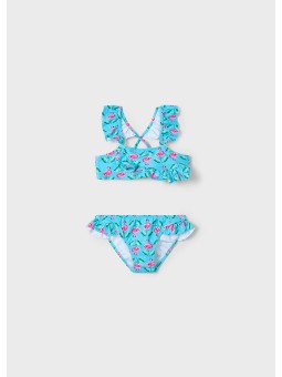 Strój kąpielowy dwuczęściowy dla dziewczynki . Lekki i elastyczny materiał dopasowujący się do ciała. Nadruk letni .