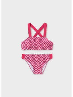 Strój kąpielowy dwuczęściowy dla dziewczynki z geometrycznym wzorem. Lekki i elastyczny materiał dopasowujący się do ciała.