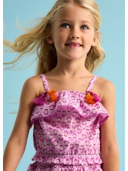 Top na ramiączkach dla dziewczynki . Góra zdobiona pomponikami i falbanką.