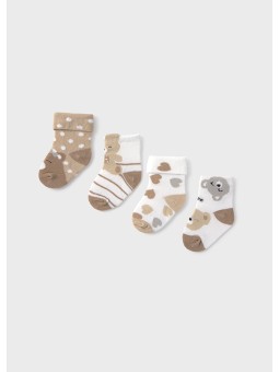 Zestaw czterech par skarpetek dla noworodka 0 do 18 miesięcy. Projekt z nadrukiem.