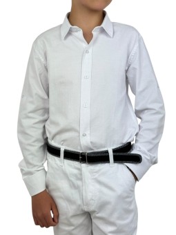 Koszula z długim rękawem dla chłopca. Zapięcie z przodu na guziki. Model gładki. Rękaw do wywinięcia.