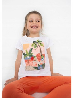 Ubranko ECOFRIENDS 100% zrównoważona bawełna. Koszulka z krótkim rękawem dla dziewczynki. Okrągły dekolt. Projekt z nadrukiem.
