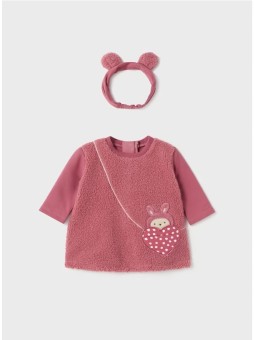 Sukienka z długim rękawem dla noworodka dziewczynki 0 do 18 miesięcy .Ciepła grubsza dzianina Zapięcie na plecach z ukrytym suwakiem. Opaska w zestawie