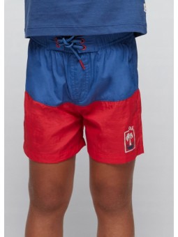 Krótkie ogrodniczki dla dla chłopca.W pasie sznurek do regulacji. Funkcjonalna kieszeń z tyłu. Ozdoby nadruk w stylu letnim