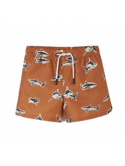 Krótkie ogrodniczki dla dla chłopca 8 do 16 lat. W pasie sznurek do regulacji. Funkcjonalna kieszeń z tyłu. Ozdoby nadruk w rekiny.