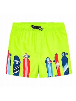 Krótkie ogrodniczki dla dla chłopca od 2 do 9 lat. Elastyczny pas ze sznurkiem do regulacji. Nadruk skater.