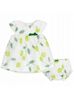 Komplet dla dziewczynki Newborn składający się z dwóch ubranek, sukienki i pasujących majteczek. Lekki i elastyczny materiał zapewniający codzienną wygodę.