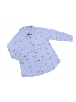* Koszula z długim rękawem dla chłopca z mankietem zapinanym na guziki. Kołnierzyk koszulowy. Model dopasowany (Slim fit). Zapięcie z przodu na guziki. Ubranko wykonane ze 100% bawełny. Nadruk w rowery.