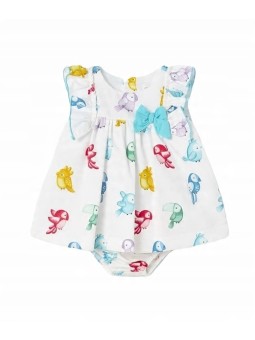 MAYORAL NEWBORN SUKIENKA LETNIA Z MAJTKAMI BIAŁA W KOLOROWE PTASZKI 1828