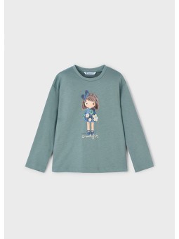 Koszulka z długim rękawem dla dziewczynki. Okrągły dekolt. Artykuł wykonany ze 100% bawełny. Ozdoby: grafika na przodzie.