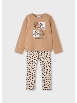Komplet dwóch artykułów dla dziewczynki składający się z koszulki ze spodniami typu legginsy.