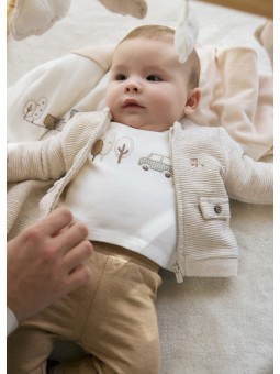 Ubranko ECOFRIENDS, zawiera bawełnę zrównoważoną. Dres dla noworodka składający się z trzech elementów: bluzy, długich dresowych spodni i pasującej koszulki.