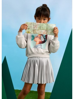 Zawiera poliester z recyklingu. Wygodne spódnico-spodnie dla dziewczynki. Regulowana gumka w pasie dla lepszego dopasowania. Model plisowany. Ozdoby: metalizowane detale