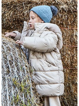 Zawiera poliester z recyklingu. Kurtka z elastycznymi mankietami dla dziewczynki. Odpinany kaptur z futerkowym wykończeniem. Model o długim kroju. Zapięcie z przodu na guziki. Zapięcie na środku na zamek błyskawiczny. Materiał wierzchni z efektem pikowania. Delikatna wewnętrzna podszewka z poliestru.