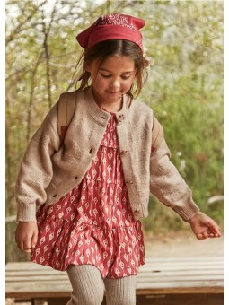 Zawiera poliester z recyklingu. Sweterek dla dziewczynki. Okrągły dekolt. Zapięcie z przodu na guziki. Wygodna dzianina. Miękka i przyjemna w dotyku dzianina trykotowa.