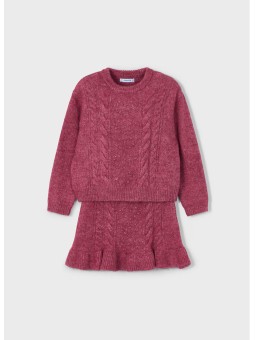 Sweter dla dziewczynki. Okrągły dekolt. Wygodna dzianina. Zewnętrzna część z efektem plecionki.