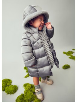 Zawiera poliester z recyklingu. Kurtka z elastycznymi mankietami dla niemowlęcia. Kaptur z futerkowym wykończeniem. Model o długim kroju. Zapięcie na środku na zamek błyskawiczny. Delikatna wewnętrzna podszewka z poliestru. Z przodu praktyczne kieszenie.