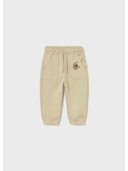 Długie spodnie sportowe dla niemowlęcia zapewniające maksymalny komfort. Elastyczny pas regulowany sznurkiem. Od wewnątrz wzmocnione kolana, dla większej wytrzymałości w strefie o większym zużyciu. Dół z elastyczną gumką dla lepszego dopasowania. Z przodu praktyczne kieszenie. Funkcjonalna kieszeń z tyłu. Ozdoby: aplikacje uszek, haft, Sitodruk (print).
