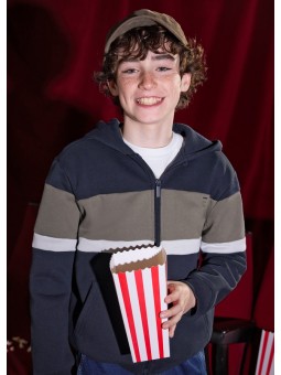 Bluza dla chłopca. Kołnierz z kapturem. Zapięcie na środku na zamek błyskawiczny. Dół i mankiety z elastycznej dzianiny dla lepszego dopasowania. Z przodu praktyczne kieszenie.