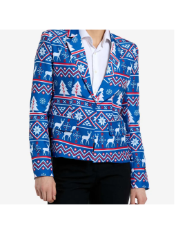 Świętuj ten okres w świąteczny sposób dzięki tej niebieskiej marynarce w stylu Nordic Christmas, idealnej na świąteczne kolacje i przyjęcia biurowe.