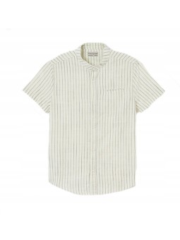 Koszula z krótkim rękawem dla chłopca Model ze stójką w pasującym kolorze. Zapięcie z przodu na guziki. Ubranko wykonane ze 100% bawełny. Projekt w paski