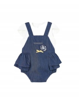 Ubranko ECOFRIENDS, zawiera bawełnę zrównoważoną i włókna TENCEL TM Lyocell. Oryginalny komplet spódniczka ogrodniczka z koszulką dla noworodka.